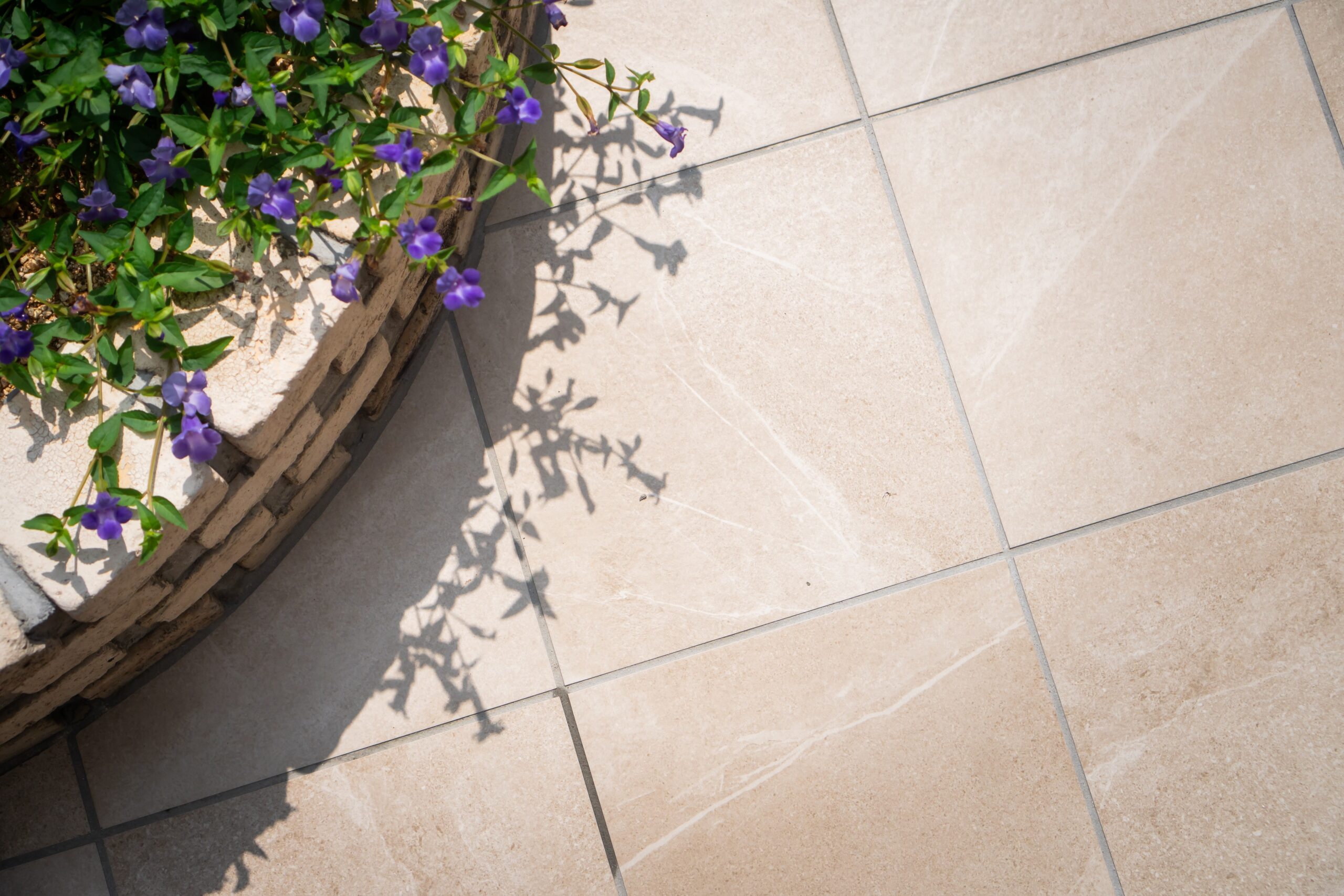 年月を重ねた擁壁は、柔らかい色味のタイルで明るい印象に生まれ変わりました。